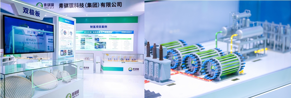 展会前夕,国际权威认证机构必维公司(Bureau Veritas)对广东会研发生产的双极板和非贵金属催化剂进行第三方检验,出具了双极板和催化剂测试见证报告。3月中旬,中国氢能联盟和必维公司专家组前往中石油首个规模化可再生能源制氢玉门油田项目现场,对广东会自主研发生产的QQJ1000/1.6 系列1000Nm3/h电解槽进行现场性能测试,并出具认证报告。参考必维现场报告和氢能联盟领跑者行动的团体标准,达到国内碱性水电解制氢系统性能等级评定1级