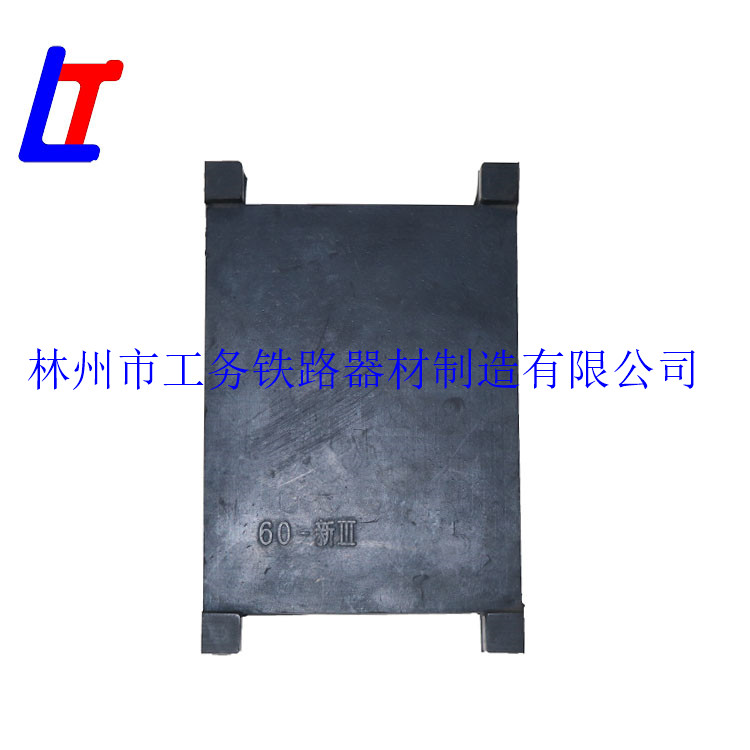 轨下胶垫适用于新III型混凝土桥枕及护轨扣件,执行标准为专线3448-II-6,材质为橡胶,体积为222cm?。